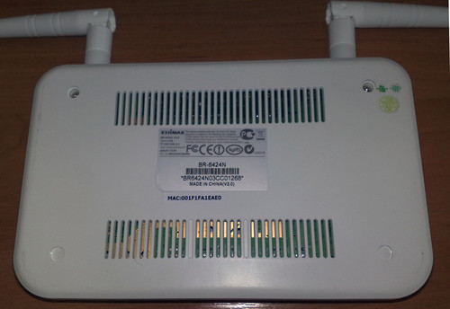 На боковых панелях расположены небольшие вентиляционные сетки. Еще две сетки, но с размерами поболее, реализованы на нижней панели роутера. Система охлаждения в Edimax BR-6424n пассивная, а значит бесшумная.