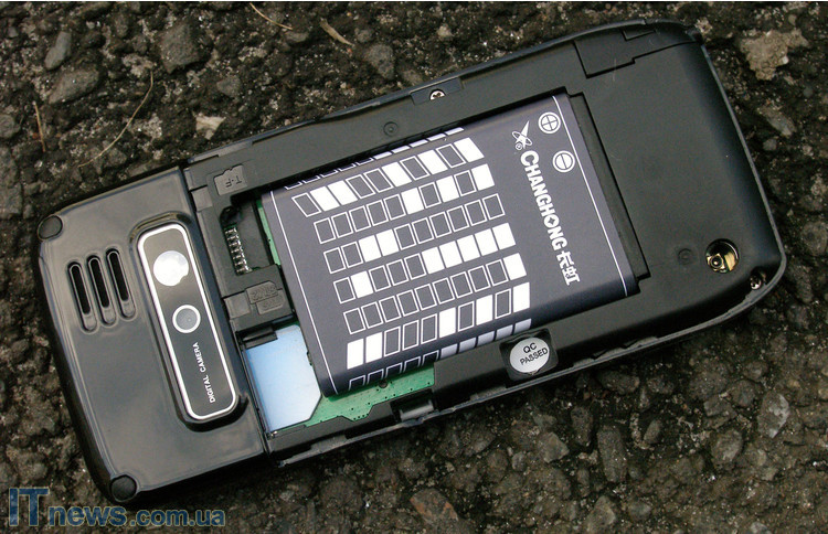 Под крышкой мы заприметили аккумулятор, а также слоты для SIM-карты и слот под карточку расширения памяти. 900 мАч, которыми наделен аккумулятор, откровенно говоря, не порадовали – как бы там ни было, но мы все же мы имеем дело с двумя GSM-модулями.