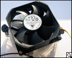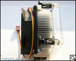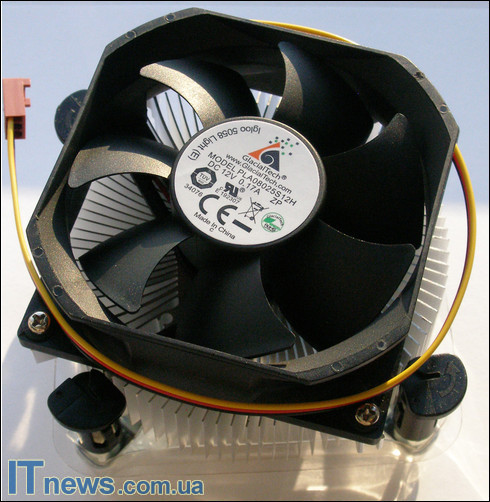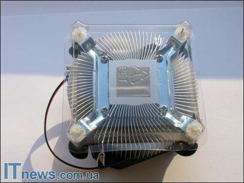 На подошве кулера нанесена термопаста. Консистенция ее достаточно густая, но поскольку она равномерно размещена по всей подошве, как-либо растирать дополнительно ее не нужно – достаточно во время "состыковки" с процессором плотно прижать и несколько раз провернуть в любую сторону, после чего можно фиксировать при помощи референсных замков-кембриков.