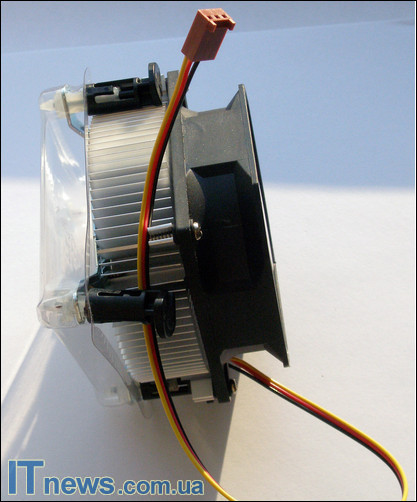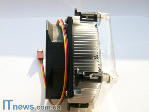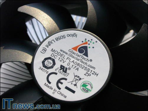 Способ крепления вентилятора к радиатору также аналогичен продуктам линейки 5057 – четыре шурупа прижимают вентилятор по торцам радиатора. Крепление на материнскую плату выглядит аналогично продуктам 5057 серии.