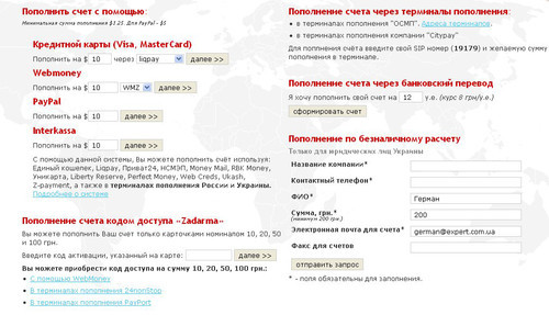 Кроме того, система предлагает удобное пополнение счета: кредитными картами, WebMoney, PayPal, через платежные терминалы. Да и с такими ценами счет придется пополнять реже, чем своего мобильного телефона.