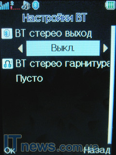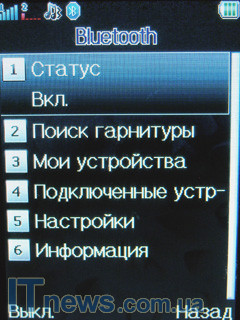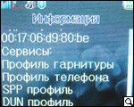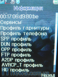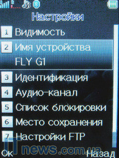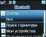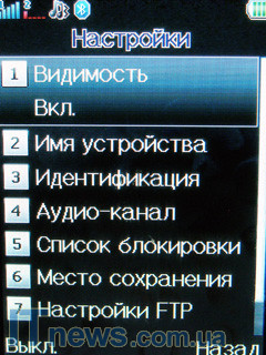 В этом же подпункте меню реализован модуль беспроводной передачи данных Bluetooth. В его особенностях поиск гарнитуры (беспроводной, разумеется), назначения места хранения файлов, переданных и полученных при помощи модуля Bluetooth, настройки FTP и BIP, аудио-канал, черный список для некоторых устройств и пр.