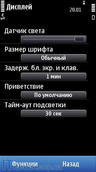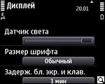 Среди других настроек возможно регулировать подсветку по датчику, определять размер шрифта для подпункта "Настройки дисплея", назначать приветствие и многое другое.