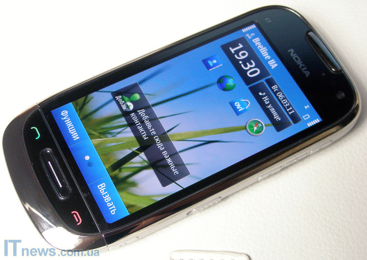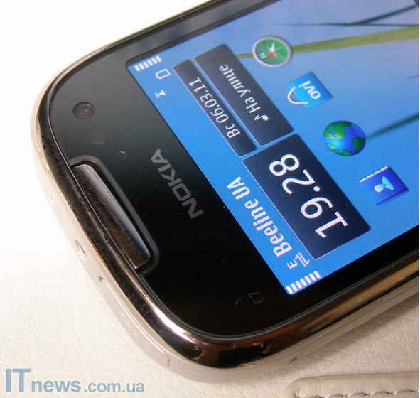 Над ним расположена прорезь внутреннего или же коммуникационного динамика. Справа от него находится несколько глазков. Так, в Nokia С7 реализован датчик освещенности, фронтальная камера и датчик приближения на местности.