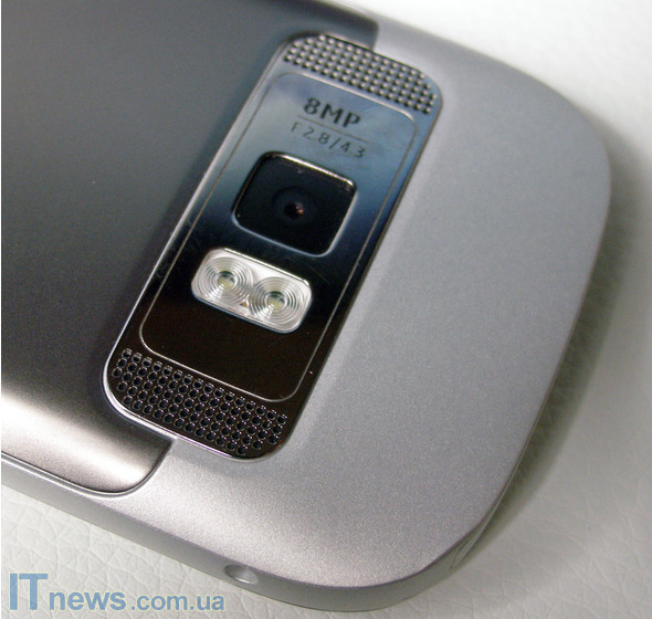 Чуть выше крышки расположены сетки динамиков громкой связи, глазок встроенной камеры, а также глазок двойной LED-вспышки.