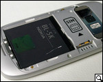 Слот для SIM-карты расположен не под аккумулятором, а между ним и сеткой динамика громкой связи. Таким образом, пользователь может не вынимать аккумулятор в случае необходимости замены SIM-карты.