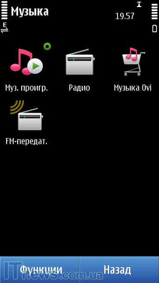 Музыкальные приложения в Nokia C7: "МР3-проигрыватель", "FM-приемник", а также "FM-передатчик" плюс онлайн-сервис Nokia "Музыка OVI".