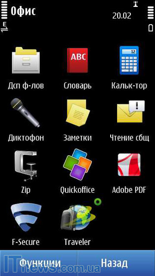 Реализован также полный пакет офисных приложений - Excel, PDF, Powerpoint, Word, Zip, а также приложение Macromedia Flash Lite 4.0.