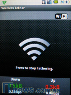 - Реализация приложения Wileress Tether, которое позволяет создать со смартфона беспроводную точку доступа;