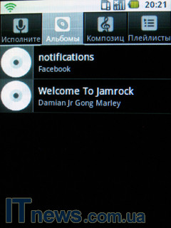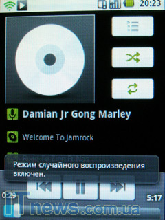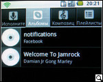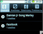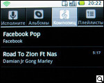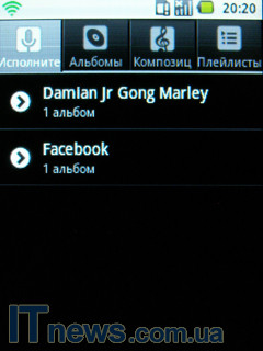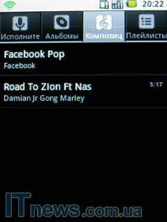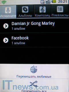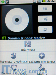 Все композиции сортируются по исполнителям, альбомам, а также плейлистам. Композиции можно воспроизводить в случайном режиме либо в режиме повтора. Можно также "перемешивать любимые" композиции, добавлять новые треки в плей-лист, а также устанавливать понравившуюся мелодию в качестве звонка и прочее.