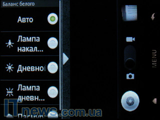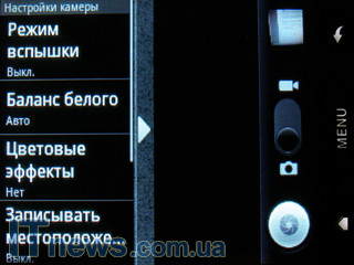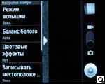 По части настроек я бы отметил пять режимов баланса белого ("авто", "лампа накаливания" и прочее), несколько цветовых эффектов ("монохром", "сепия", "негатив" и пр.), а также возможность выбрать размер фотографии, качество плюс возможность записи местоположения и прочее.