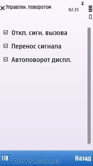 Акселерометр традиционно отключается из подпункта меню "Параметры сенсора", доступ к которому открывается, если пользователь перейдет по лесенке "Параметры" - "Телефон" - "Параметры сенсора". С последнего из упомянутых подпунктов пользователь может настроить режим отключения сигнала вызова при помощи поворота устройства, а также перенос сигнала. Последняя из особенностей выполняется также "банальным" перевертыванием телефона. Таким образом, легко заметить, что в Nokia C5-03 реализована поддержка управления некоторыми приложениями устройства при помощи жестов.