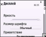 С других настроек, доступ к которым пользователь получает, перейдя по лесенке "Параметры" - "Телефон" - "Дисплей", стоит отметить наличие шкалы регулирования яркости подсветки, а также возможность выбрать шрифт для этого подменю, настроить приветствие и тайм-аут подсветки.