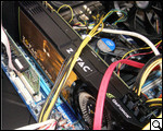 Ближе к противоположной от вентилятора грани размещена дугообразная стрелка зеленого цвета, знакомая нам уже по ASUS GeForce GTX 580. Она, а также небольшая нарисованная красками эмблема компании-производителя, реализованная на оси вентилятора, и подытоживают модинг передней панели короба.