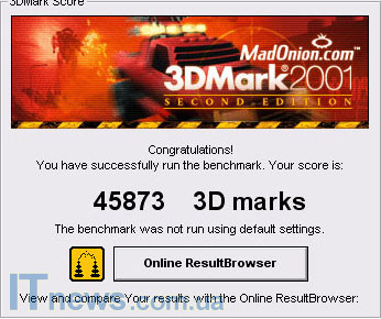 После чего, был проведен тест при помощи утилиты 3DMark2001 SE. Показатель ниже:
