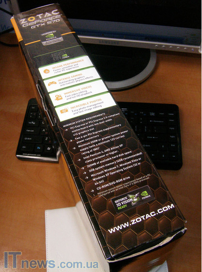 Внешне ZOTAC GeForce GTX 570 достаточно похожа на видеокарту компании ASUS, модель ASUS GeForce GTX 580, о которой я рассказывал в этом обзоре.