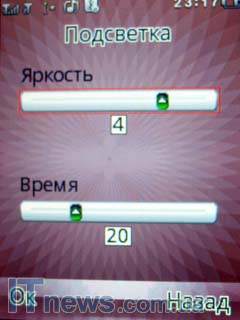 По части настроек все достаточно традиционно: возможность выбрать обои, анимацию, регулировать подсветку вручную посредством специальной шкалы. Также есть возможность регулировать время задержки подсветки во время пребывания устройства в режиме ожидания.
