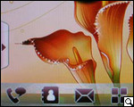 Под вертикальной левой окантовкой словно "прячется" небольшая строчка виджетов. "Вызвать" ее пользователь может простым нажатием на миниатюрный треугольник, расположенный здесь же. Всего в строчке 12 виджетов, причем что интересно, пользователь на рабочий стол может вынести их все. Виджеты не располагаются согласно какой-либо структуре, а могут находиться даже один на другом. Конечно, насколько такое расположение удобно, вопрос, скорее спорный, тем не менее, такая возможность реализована.