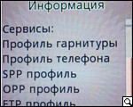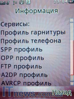 Bluetooth 2.0. Из поддерживаемых профилей можно отметить следующие: OPP-профиль, A2DP, AVRCP, SPP, FTP и прочие. Устойчивость сигнала сопряжения нормальная – лично у меня в прямой видимости на расстоянии не менее шести метров между устройствами обрывов связи не было.