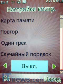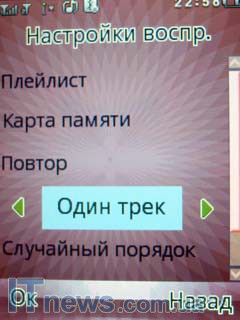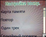 Среди настроек воспроизведения пользователь может выбрать тип памяти – встроенную или внешнею, из которой будет считываться композиция, активировать режим повтора, либо режим случайного воспроизведения и прочее.