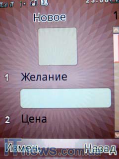 В Fly E181 Sophie реализовано несколько исключительно женских приложений, среди которых такое незамысловатое и, на мой взгляд, определенно забавное, как "Желания". Здесь пользовательницы могут в определенном роде "регистрировать" свои желания, присваивая им метку, дату и даже небольшую картинку.