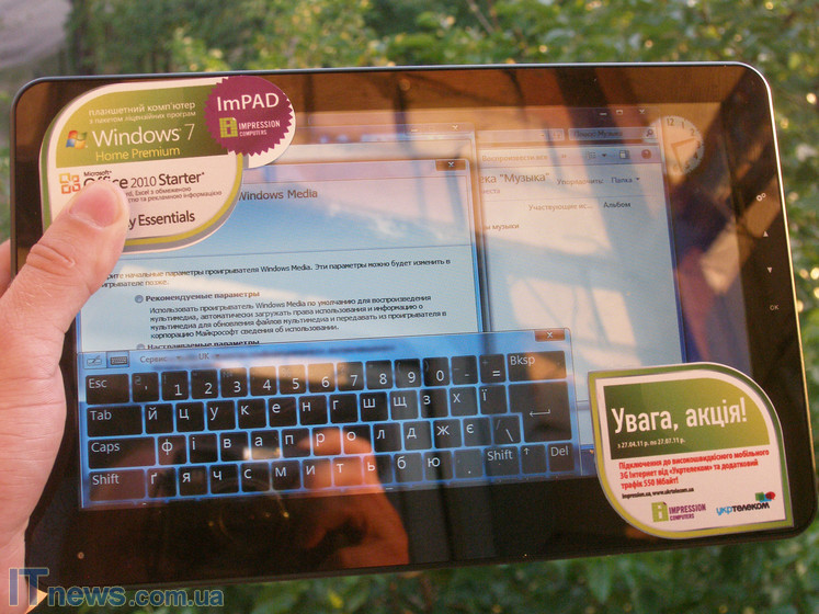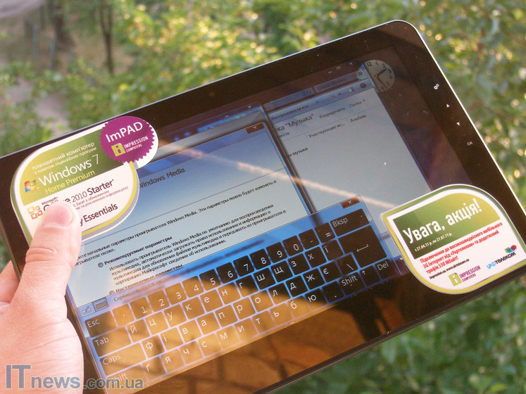 Impression ImPAD 0111, вне сомнения, будет конкурировать с iPad2, особенно после того, как последний начал официально продаваться на украинском рынке. Конечно, на стороне "яблокофона" прекрасный дизайн, да и интересная разработка сама по себе и пр. Однако с функциональной точки зрения iPAD2 уступает по части работы с flash-сайтами и flash-играми, а также по части передачи информации на другие устройства посредством DATA-кабеля. У последнего попросту нет такого количества портов и разъемов, которые в свою очередь реализованы в Impression ImPAD 0111. И этот список далеко не полный.