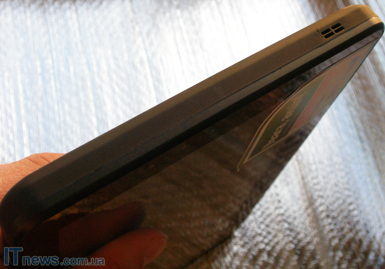 На противоположной боковой панели функциональных элементов не предусмотрено, за исключением только сетки, "прячущей" за собой один из стереодинамиков.