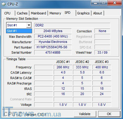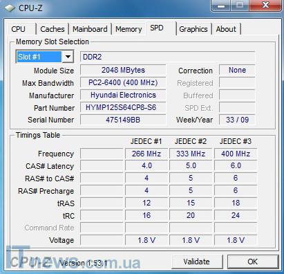 Используется 2 ГБ оперативной памяти от Hyndai Electronics. Частота памяти 400 МГц.