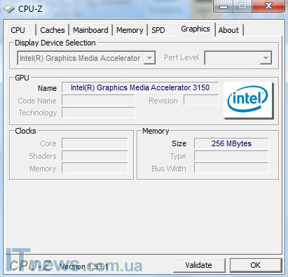 За обработку графики отвечает выделенная Intel Graphics Media Accelerator 3150, которая в оперативной памяти под "свои нужды" отбирает до 256 МБ включительно.