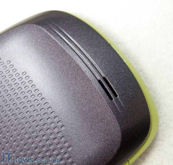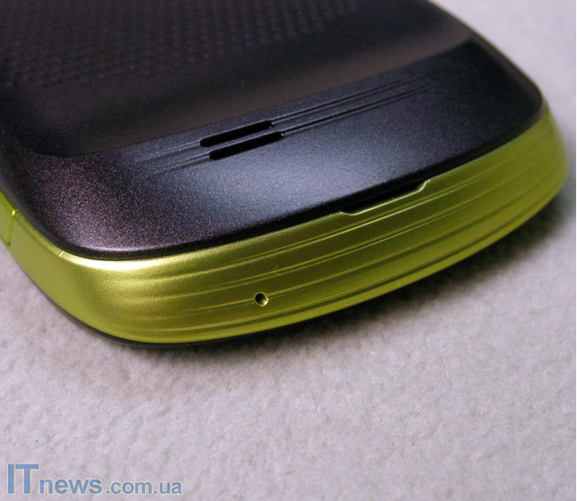 И, наконец, на нижнем расположен небольшой разъем, "прячущий" за собой встроенный микрофон. Кроме него, здесь же находится зазор, предназначенный специально для того, чтобы пользователь мог легко снять крышку аккумуляторного блока.