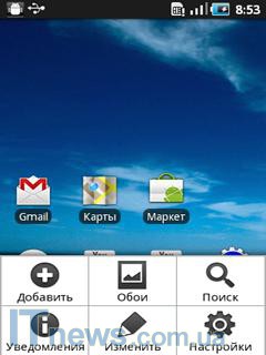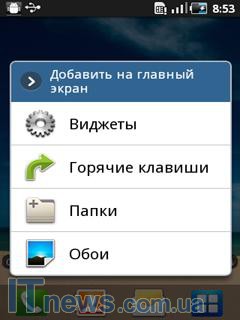 Оболочка состоит из семи свободно перелистывающихся между собой окон. На них пользователь волен сосредоточить определенное количество ярлыков, виджетов, а также папок. Точное количество элементов, которые поместятся на каждой из панелей, не регламентировано, поскольку размеры виджетов между собой разные.