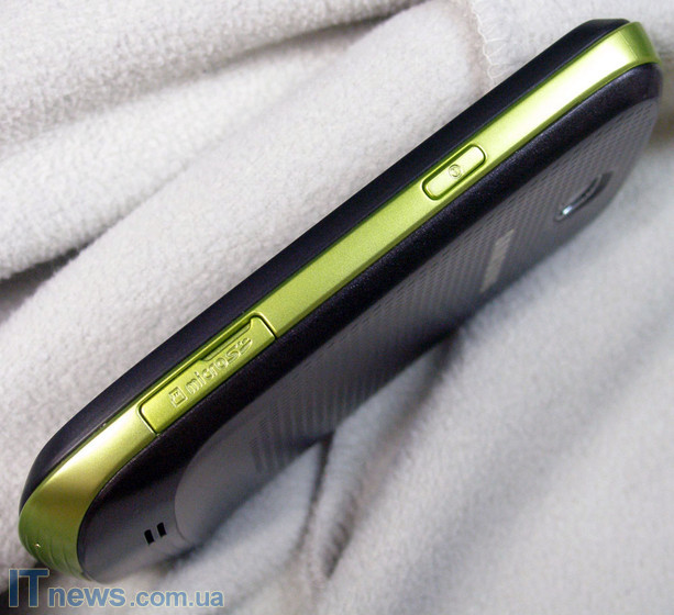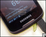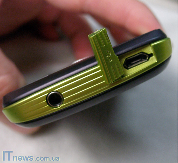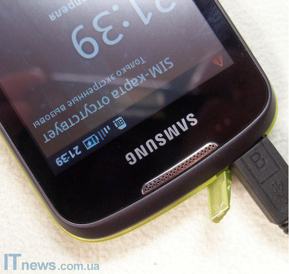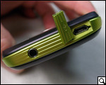 На верхнем торце Samsung Galaxy Mini (S5570) находится 3,5 мм разъем для подключения традиционных проводных наушников. Рядом с ним размещен порт micro-USB для подключения кабеля зарядного устройства, а также шнура синхронизации смартфона с USB-портом компьютера или ноутбука. Последний из элементов прикрыт прочной пластиковой заглушкой.