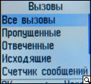 Подменю "Вызовы" - это традиционный регистратор всех входящих, исходящих, а также пропущенных вызовов, плюс счетчик отправленных и полученных сообщений SMS.