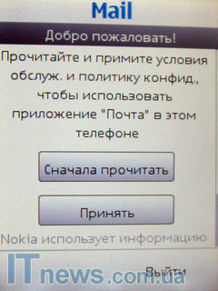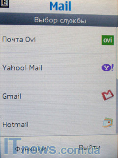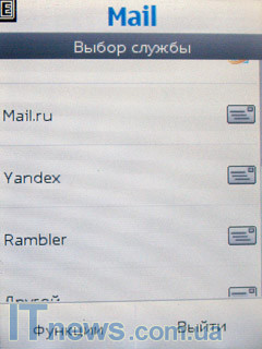 Перейдя в подменю "Сообщения", пользователь помимо работы с традиционными менеджерами SMS/MMS сообщений, а также приложением "Чат" и двумя другими менеджерами "Быстрое сообщение" и "Звуковое сообщение", получает доступ к приложению "Электронная почта".