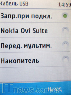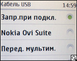 Посредством USB-кабеля, который, кстати, почему-то не предусмотрен комплектом поставки Nokia C3-01, к USB-порту компьютера или ноутбука телефон может подключаться тремя вариантами: Nokia OVI Suite, "Передача мультимедиа" либо как "Накопитель".