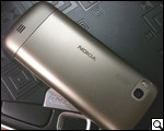К сожалению, у меня не было возможности посмотреть устройство в корпусах двух первых расцветок. Однако, что касается золотистого оттенка, признаюсь честно – остался приятно удивлен. В этом случае перед нами уже не только многофункциональное устройство – это еще и стильный аксессуар, вне сомнения, дороже своей реальной цены. Выглядит замечательно. "Статусный" оттенок, различные вставки, опрятно изготовленное покрытие дисплея, стильно гармонирующее с материалом корпуса. Словом, осмотрев Nokia C3-01 вначале, вовсе не скажешь, что трубка стоит только 145 евро.