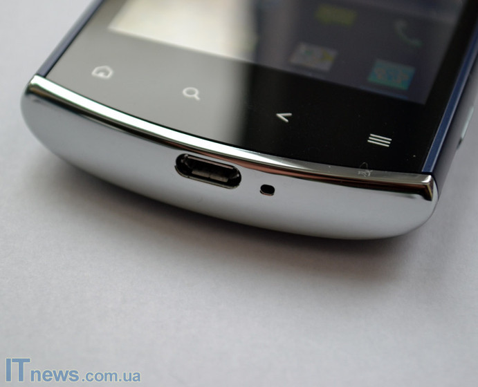 И, наконец, на нижнем торце находится порт micro-USB, а чуть в стороне от него миниатюрная прорезь, "прячущая" за собой встроенный микрофон.