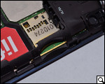 Крепление крышки аккумуляторного блока на корпус достаточно простое – по времени не более пары секунд. А вот для выполнения обратной процедуры, по меньшей мере, на первых пора пользователю понадобится гораздо больше времени, сил и умений. Дело в том, что для того чтобы снять крышку аккумуляторного блока, необходимо вначале поддеть ее за зазоры на боковых панелях, а затем силой потянуть на себя.