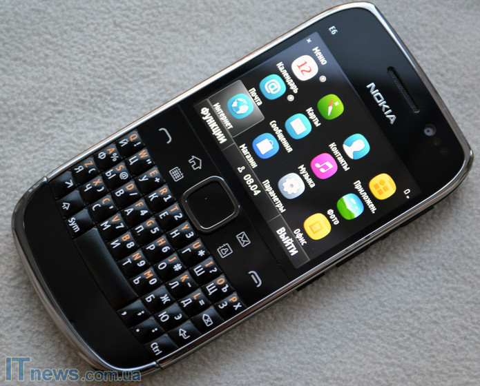 Nokia E6-00 оснащена полноформатной QWERTY-клавиатурой.