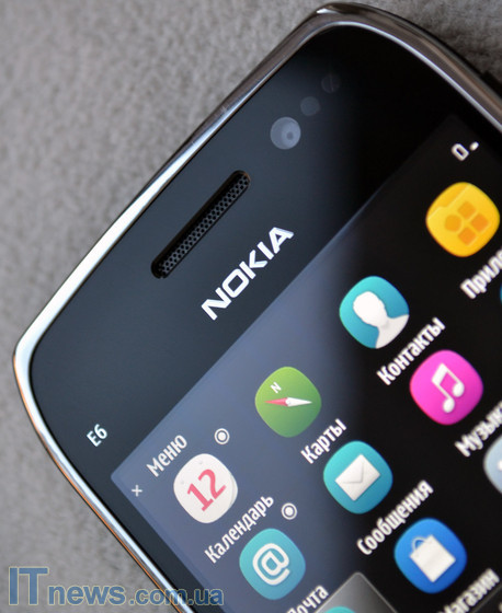 Nokia E6-00 оснащена дисплеем, диагональ которого 2,46 дюйма, разрешение 640х480 точек.