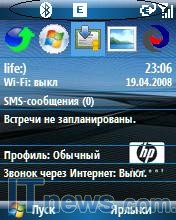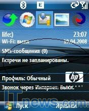 Экран в HP iPAQ 514 Voice Messenger не сенсорный, хотя, говоря откровенно, видя меню операционной системы Windows mobile 6.0. так и хочется ткнуть пальцем в дисплей. Благо это желание после нескольких дней пользования пропадает.