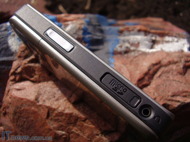 На левой – клавиша-качелька регулировки звука, разъем горячей замены карт памяти, а также 2,5 мм разъем для подсоединения проводной стереогарнитуры.