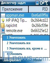 Интересный арсенал сосредоточен в подпункте "Стандартные". Приложение HP iPAQ DATA Connect необходимые параметры подключения. Приложение HP iPAQ Tips позволяет создавать необходимые ярлыки, "Диспетчер ресурсов", отвечает за использование встроенной памяти, а также памяти на карточке, плюс процессор и частоту. С помощью приложения "Диспетчер задач" пользователь может закрывать приложения, находящиеся в фоновом режиме.