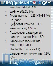 Кроме того, в HP iPAQ 514 Voice Messenger пакет офисных приложений (посредством которых, правда, можно просматривать соответствующие файлы), полноценный Internet Explorer, клиент электронной почты и проигрыватель Windows media.