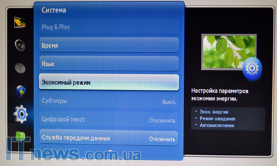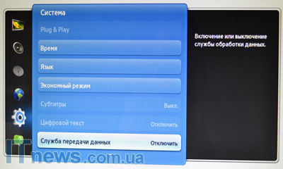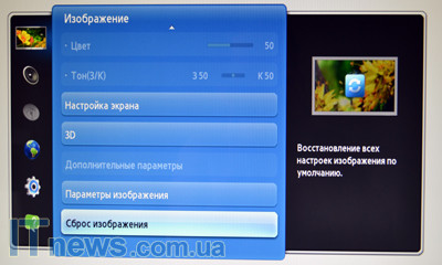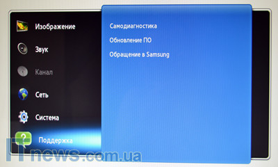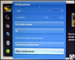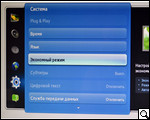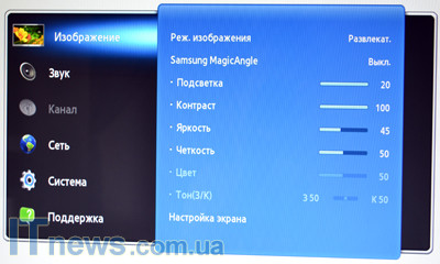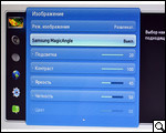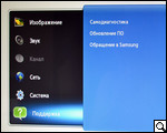 Реализованные в SyncMaster TA950 настройки разделены на шесть больших разделов: "изображение", "звук", "канал", "сеть", "система" и "поддержка". Переход между ними легко осуществляется посредством небольшого несколько своеобразного сенсорного джойстика. Адаптация здесь несложна. Главное меню активируется сенсорной кнопкой слева, на которую нанесена пиктограмма в виде индикатора зарядного устройства.
