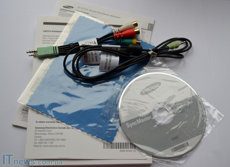 Внутри упаковки, разумеется, идет сам монитор. Помимо него, "штатной" комплектацией также предусмотрена вся необходимая документация, различные кабеля и шнурки, в том числе и HDMI-кабель, а также оптический диск со всем необходимым программным обеспечением, пульт дистанционного управления плюс специальные 3D-очки. О пульте что-то добавить по существу, к сожалению, не смогу – в моем Samsung TA950 пульта не оказалось, впрочем, и как очков. Однако, как мне удалось выяснить, очки по функционалу и номиналу точно такие же, как мы встречали с нашими читателями в комплектации монитора Samsung SyncMaster SA700. С обзором этого устройства, можно познакомиться, перейдя по ссылке ниже.
