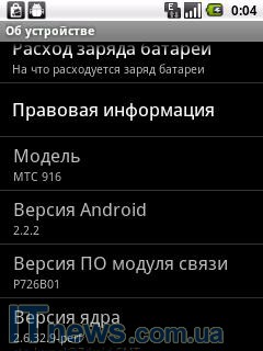 МТС 916 работает под управлением операционной системы Android 2.2.