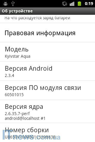Работает Киевстар Aqua под управлением ОС Android 2.3.4.