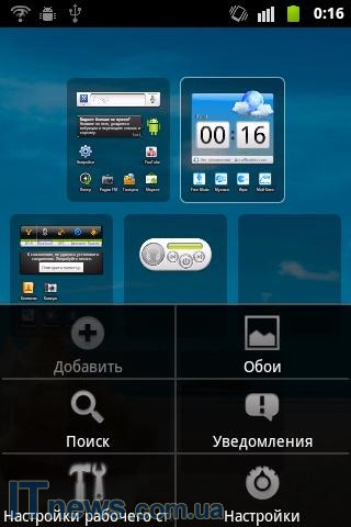 Оболочка меню в Киевстар Aqua представлена несколькими рабочими столами, которые, разумеется, легко перелистываются в произвольную сторону. Имеется, конечно же, и строчка уведомлений, а также множество красивых виджетов и пр.