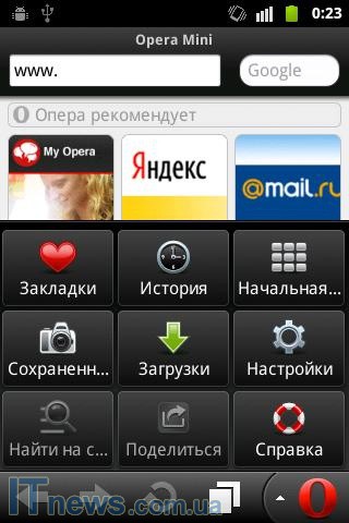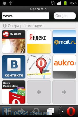 WEB-cерфинг обеспечивают два браузера: "штатный" и Opera Mini.